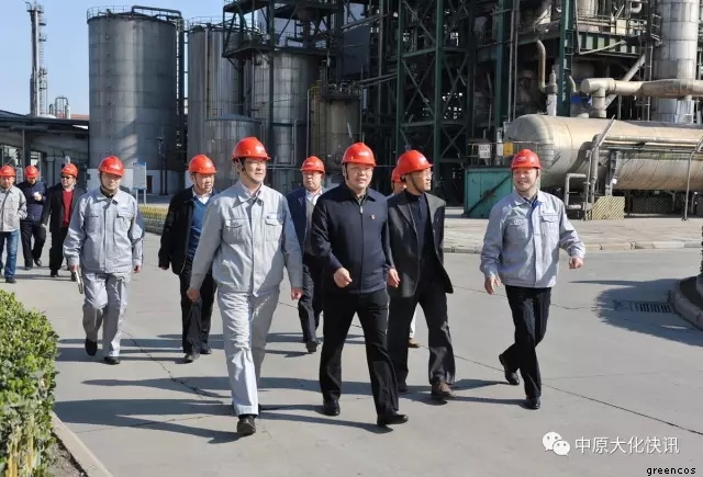 在天然氣化工裝置區(qū),馬富國在聽取了有關(guān)生產(chǎn)裝置的運行情況介紹后,又向化肥事業(yè)部的管理人員詳細詢問了他們在經(jīng)營管理、員工培訓(xùn)、新產(chǎn)品開發(fā)等方面的好經(jīng)驗、好做法,并勉勵大家不僅要優(yōu)化裝置運行,搞好安全生產(chǎn),而且要不斷進行知識更新,開闊眼界,努力開發(fā)出具有高附加值的產(chǎn)品,走高端發(fā)展的道路。在煤化工裝置區(qū),馬富國親切看望了生產(chǎn)一線員工,并對甲醇裝置長周期運行所取得的成績給予了充分肯定,同時要求甲醇事業(yè)部要安全、環(huán)保一起抓,精心操作,穩(wěn)定運行。在中原大化公司展廳,馬富國一行興致勃勃地參觀了公司發(fā)展歷程展覽,并指示中原大化要扎實做好綠宇公司新三板上市的各項工作,加快推進上市步伐。